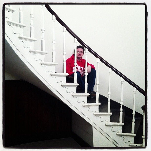 Here I am sitting while wearing the pink hooide. The principle is the same though. Photo: Michael Carchrie Campbell
